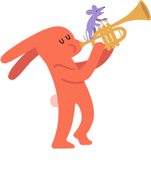 Cartoon Rabbit Playing A Trumpet, A Mouse Pressing - Trumpet