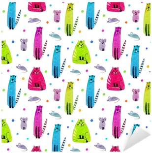 Seamless Pattern Of A Funny Cat, Mouse And Balls - Illustration