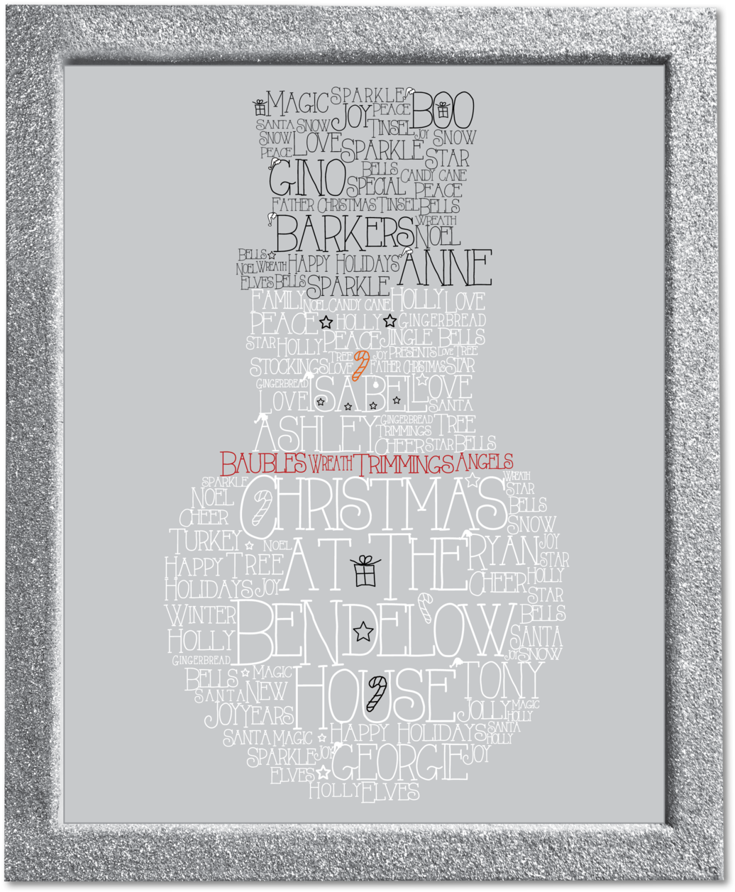 Snowman Family Personalised Word Art With Sparkly Frame - Art