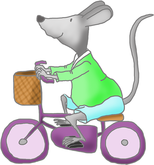 Mouse With Green Pram - Mouse On A Bike